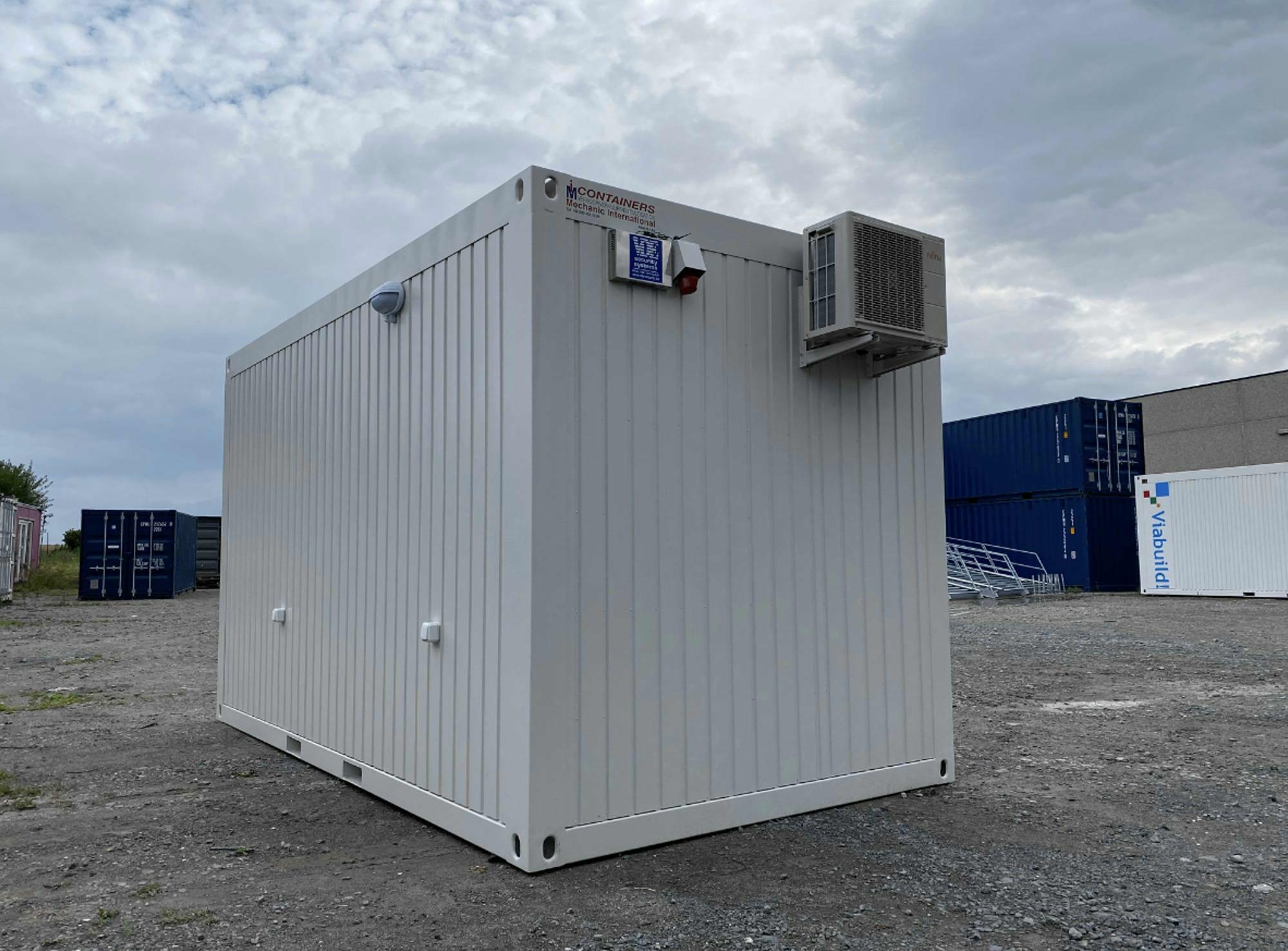 Pour un client, nous avons produit plusieurs conteneurs de bureau, utilisés sur différents chantiers en Belgique. Ces conteneurs sont équipés d’un éclairage intérieur et extérieur, ainsi que d’un système d’alarme pour une protection optimale contre le vol.